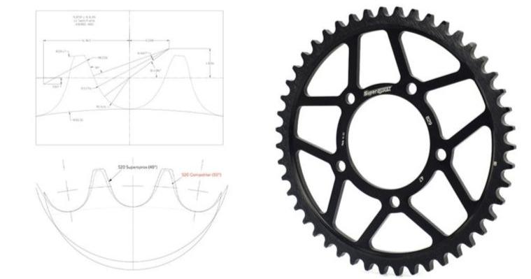 In 1909 sprocket tooth design reflected the lower power of then current machines - Supersprox; in partnership with race teams, designed a new lighter weight sprocket with new teeth offering